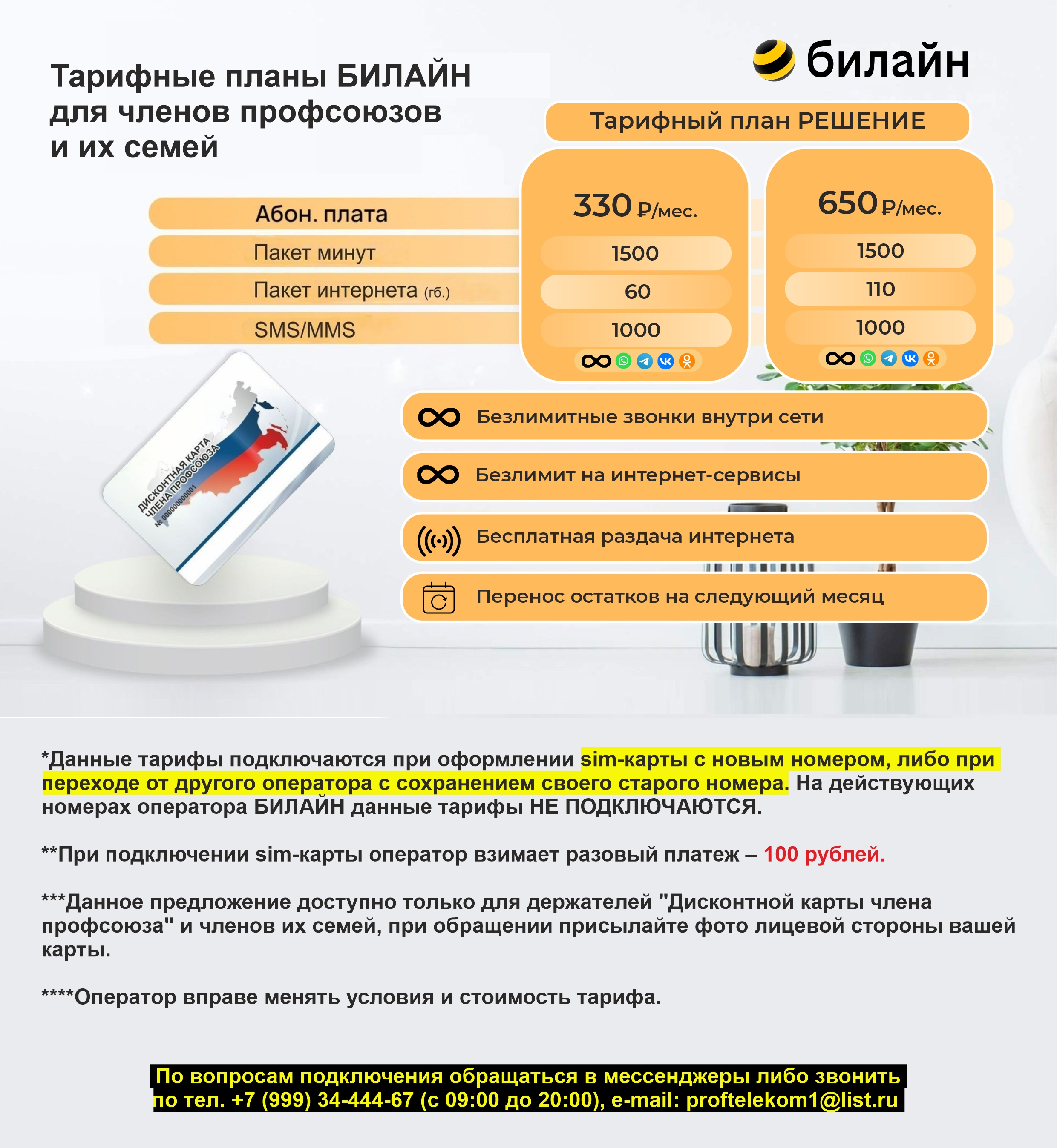 Предлагаем специальный тариф "РЕШЕНИЕ!"* для членов профсоюзов и их семей!