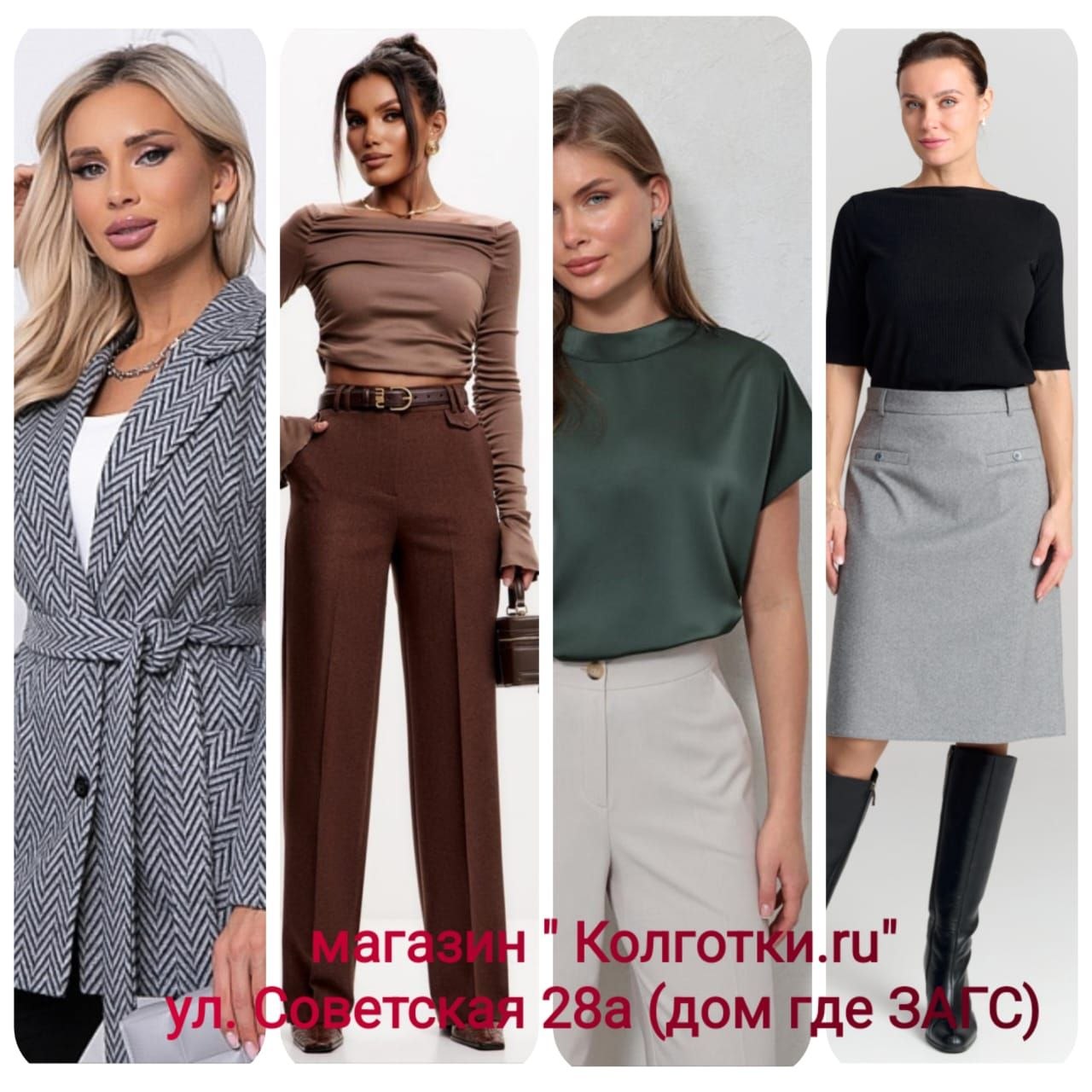 В магазине "Колготки.ru" представлена женская одежда российского производства. В ассортименте: платья, блузки, джемперы, водолазки, юбки, брюки и костюмы от ведущих фабрик России. А также чулочно-носочные изделия от известных брендов: Omsa, Sisi, Filodoro, Teatro, Conte и Minimi.