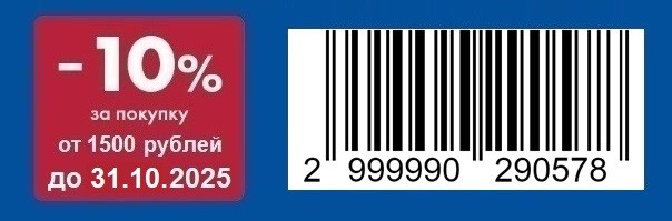 *Предъявите кассиру сначала вашу Карту №1, а потом штрих-код купона (можно с экрана телефона) при покупках от 1500 рублей (после вычета всех скидок, без учета табака и табачных изделий). Если на товар прошла скидка больше по размеру, то скидка 10% не суммируется. Скидка действует многократно на одну Карту №1 в период акции, но максимальная сумма скидки 1000 рублей. Количество активаций штрих-кода ограничено — 100 000 шт. Акция проходит с 1 по 31 октября 2025 г. Если на товар установлена минимальная розничная цена, размер скидки может быть ограничен. Скидка не распространяется на подарочную карту, табак и табачную продукцию.