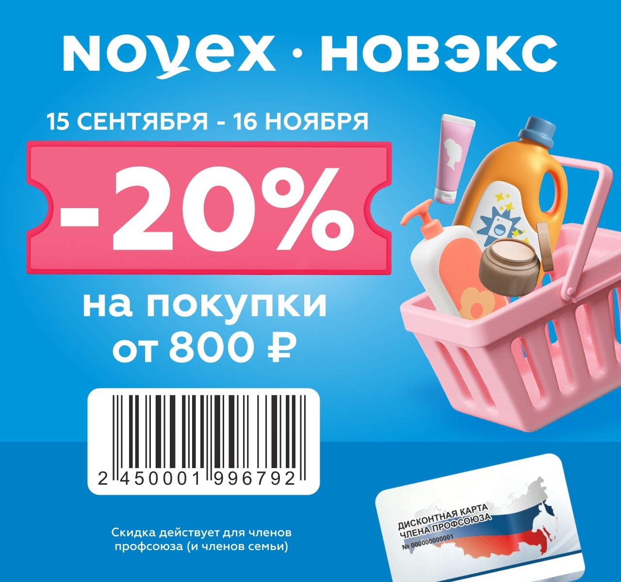 *Скидка по дисконтной карте члена профсоюза 20% по купону до 16 ноября 2025 года при покупке в розничном магазине от 800 рублей. Скидка по купону применяется только на товары с белыми ценниками. Купон не действует на акционные товары и не распространяется на подарочные сертификаты.