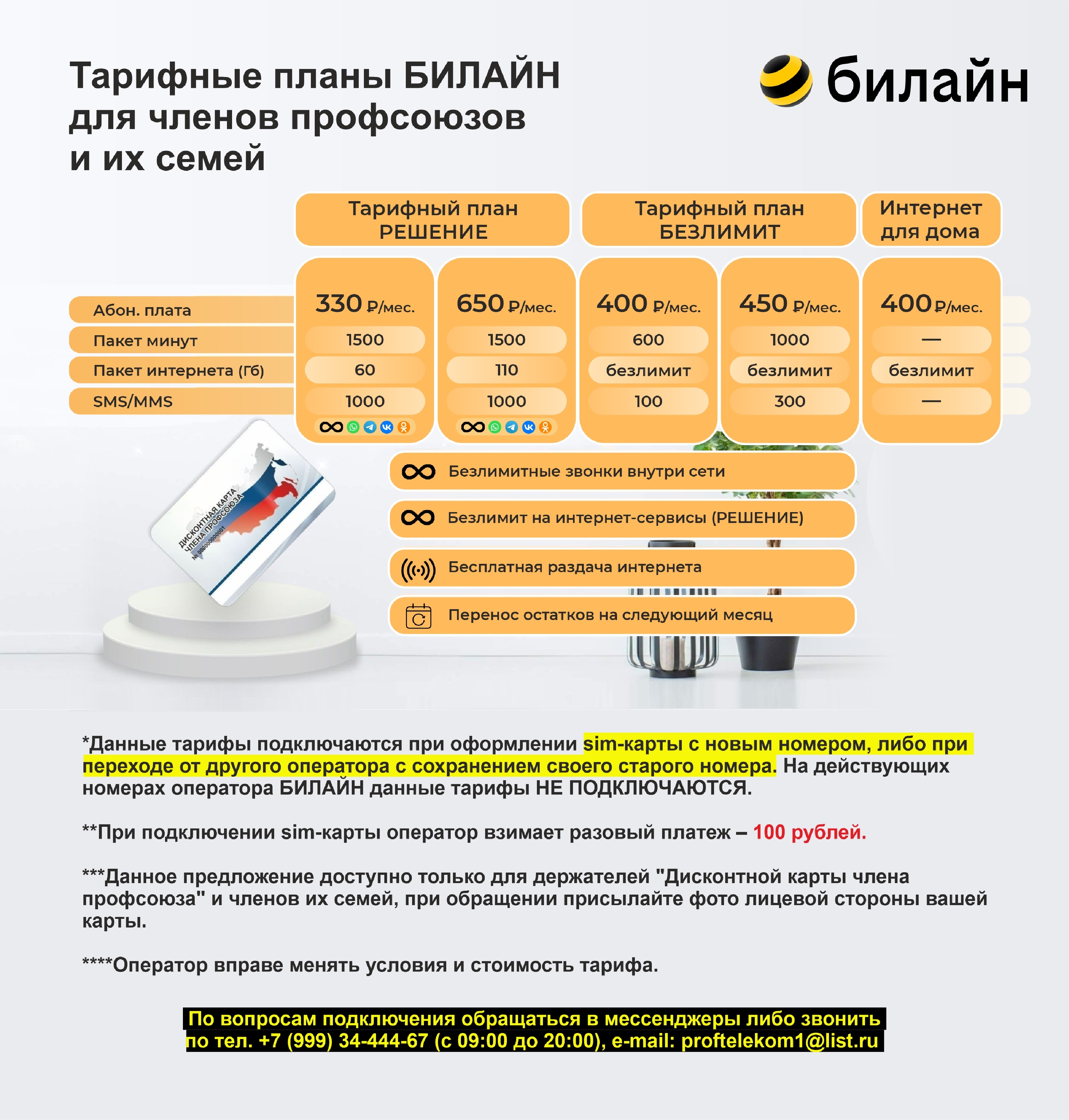 Предлагаем специальный тариф "РЕШЕНИЕ!"* для членов профсоюзов и их семей!