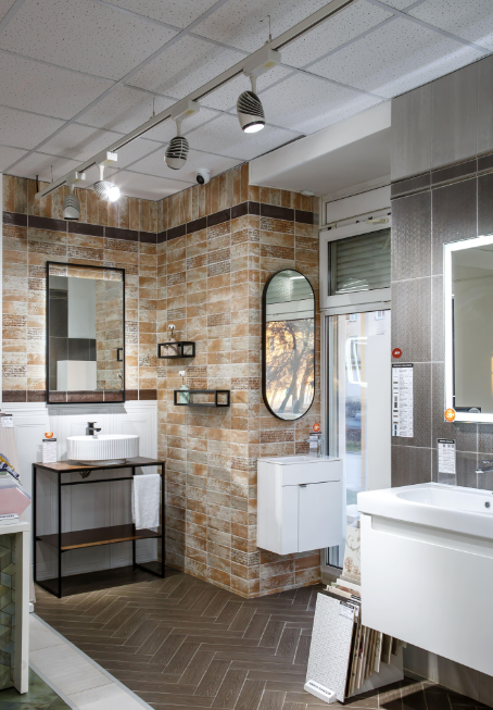 "KERAMA MARAZZI" – это большой ассортимент товаров для ремонта: обои; сантехника и мебель для ванной; керамическая плитка и керамогранит; смесители; душевые ограждения и зеркала. В магазине можно заказать клей и затирку, системы выравнивания плитки и высокоэффективные очищающие составы. Для того, чтобы с выбором было определиться легче, в магазине представлены готовые интерьерные решения, в которых наглядно представлено, как плитка, сантехника и мебель сочетаются в одном пространстве ванной комнаты. Опытные дизайнеры помогут скомбинировать несколько вариантов плитки, подберут подходящую сантехнику и мебель, визуализируют проект из выбранных материалов и рассчитают необходимое количество.