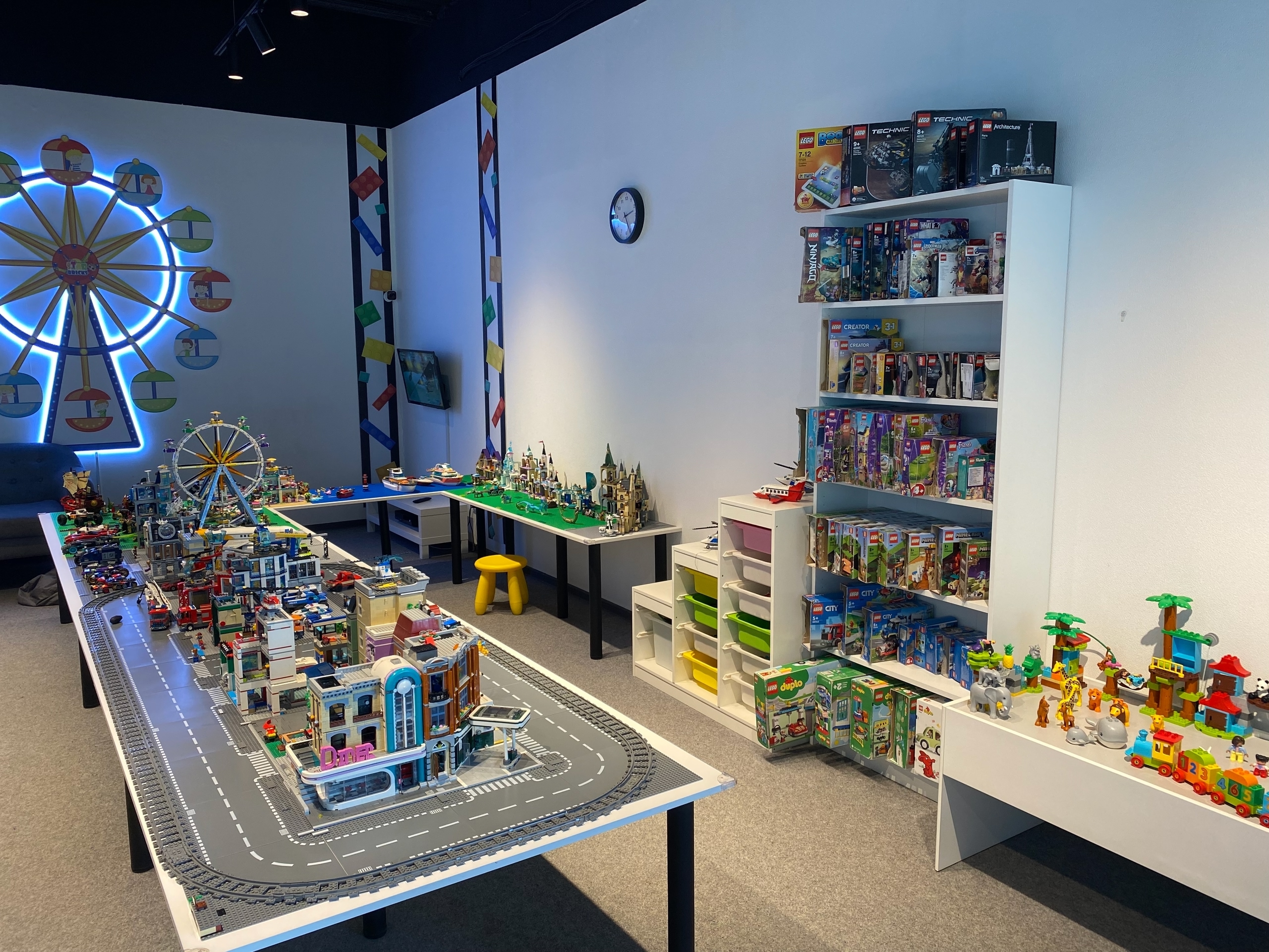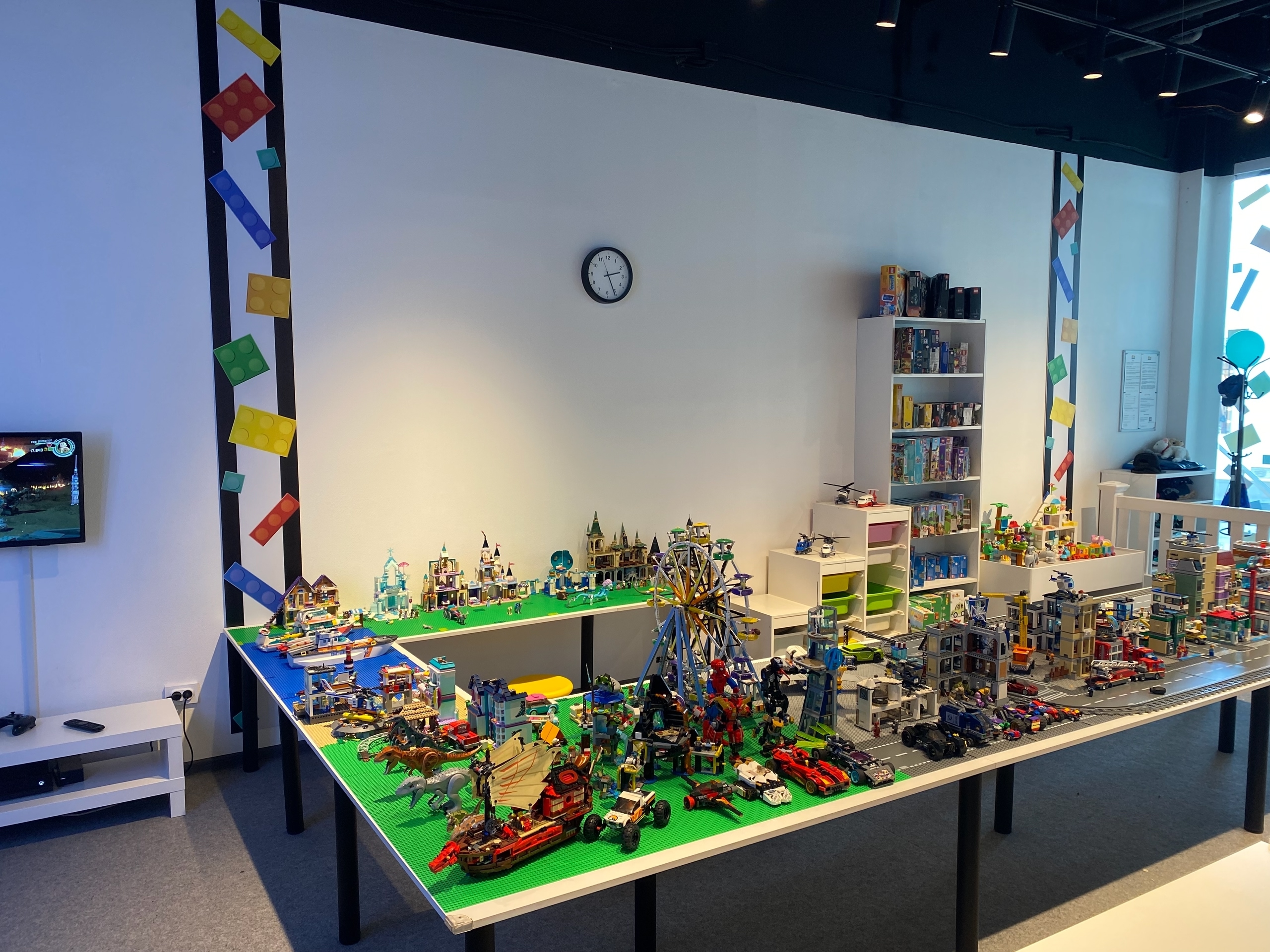 Филиал сети интерактивных фан-клубов компании "StarBricks" — это место, где вас ждёт увлекательное путешествие по невероятному городу, построенному из любимого конструктора лего. А в зоне свободного творчества можно придумывать и строить из любимых кубиков всё, что захочется, или просто собирать понравившийся набор конструктора. Есть игровая приставка с лего-играми.