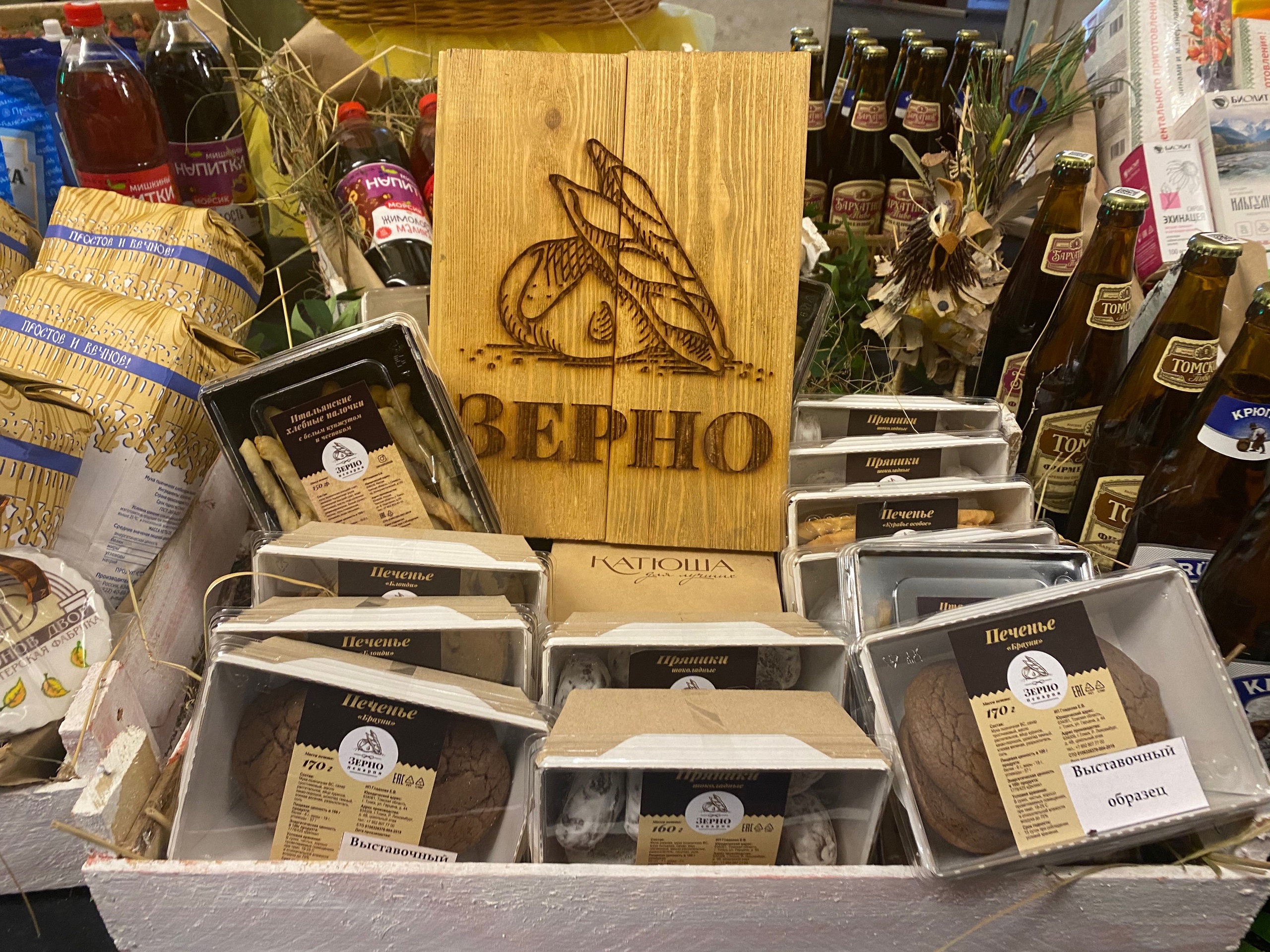 Благодаря 10-ти летнему опыту и собственному производству хлебобулочных и кондитерских изделий в сети фирменных экомагазинов "Зерно" отобраны для продажи только проверенные, безопасные и натуральные продукты. В ассортименте магазина представлена продукция собственного производства (хлебобулочные и кондитерские изделия, полуфабрикаты премиум класса с чистым составов) и сторонняя: от микрозелени до мясной продукции местного фермерского и импортного производства.